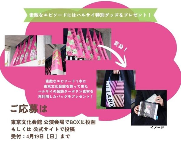 また、選ばれた1本のエピソードには、今春に東京文化会館を装飾したターポリン資材を再利用した、世界に一つだけのスペシャル・グッズをプレゼント。正面入り口や軒下に掲示されたターポリンを再利用したものであり、まさに世界に一つだけのグッズとなります。(こちらのグッズは2027年の音楽祭で販売を予定しています)