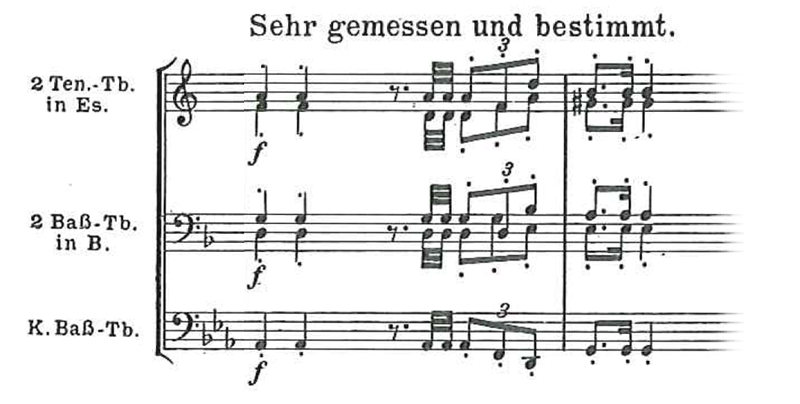 家主はその話に言葉を失う。自分こそが男の戦いの相手であるフンディングであったからだ。フンディングは男に今晩の宿は与えるが、明日、決着をつけると言い渡し、寝室に向かう。「フンディングの動機」のリズムを刻むティンパニのC(ド)の音(譜例⑭)が徐々に弱まっていき、フンディングが眠気を覚えてウトウトしている様子を音で描写する。