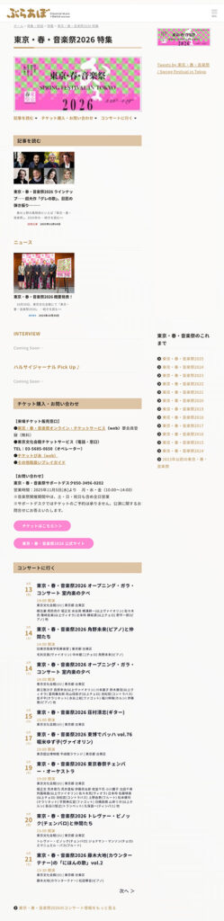 ぶらあぼONLINE 「東京・春・音楽祭 2026」 特集ページオープンのお知らせ