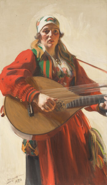 今回のプログラムは、アンデシュ・ソーン(1860–1920)の『故郷の調べ』 というダーラナ地方の民族衣装を着た女性がリュートを弾いている絵から着想を得たものです。このリュートは、私が普段弾いているリュートとは違います。これは18世紀にスウェーデンで作られた独特の楽器で、イギリスで16世紀に流行した金属弦でフレットが打ち付けられたシターンと、イタリアで17世紀初頭に登場した竿の長いテオルボを合体させたような構造で「スウェーデンリュート」と呼ばれ、18世紀から現代にまで形を変えながらも弾き続けられています。
